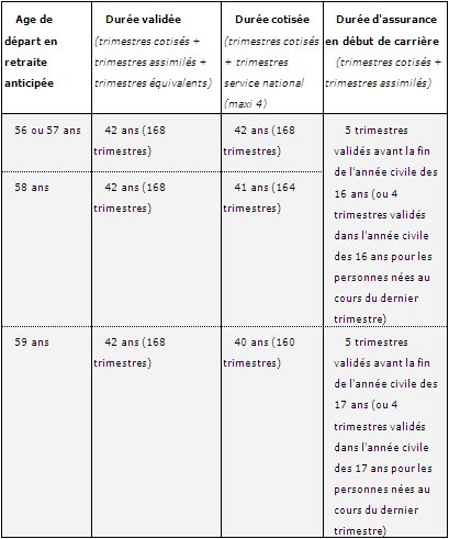 2.2 Conditions pour un départ anticipé en retraiteRappel des nouvelles mesures communes à tous les régimes pour un départ anticipé en retraite issues de la réforme des retraites de 2010 :