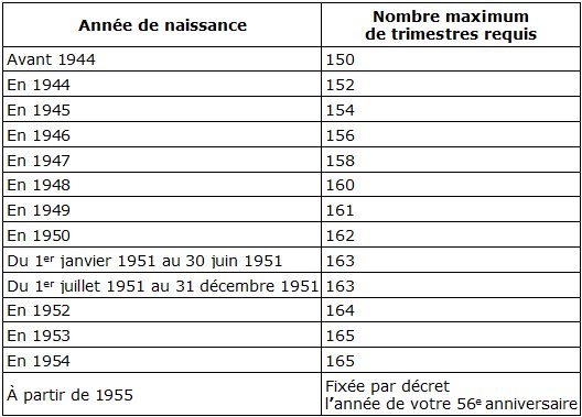 - Un nombre de trimestres cotisés :