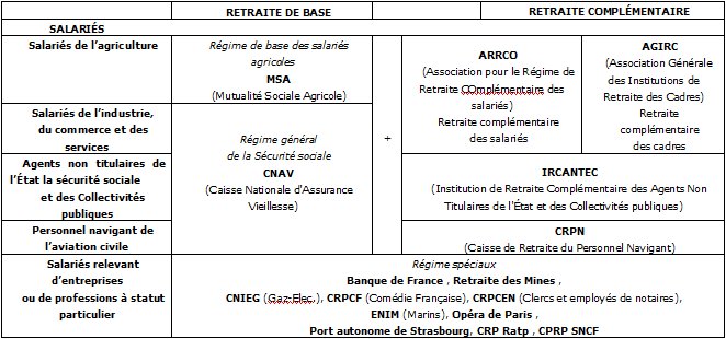 Nous traitons ici la retraite des salariés du privé et des personnes ayant travaillé pour des entreprises parapubliques (Agents Non Titulaires de l'État - Banque de France - Opéra de Paris, etc.)